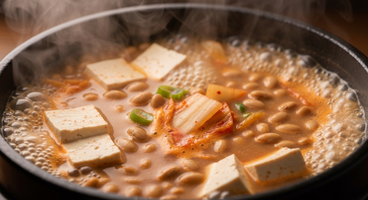 내비게이션이 목적지에 다다랐음을 알리기도 전에, 열린 창틈으로 먼저 비집고 들어오는 건 흙내 섞인 진득한 공기입니다. 용인 외곽의 좁은 길, 전현무가 "이건 보약"이라며 뚝배기 바닥까지 긁어대던 그 집 앞입니다. 간판도 없는 낡은 건물 주차장엔 이미 전국 각지에서 몰려든 차들이 빽빽하게 숨을 고르고 있습니다. 문을 열고 들어서면 투박한 뚝배기 안에서 '투덕투덕' 소리를 내며 끓어오르는 콩알들이 보입니다. 쿰쿰함보다는 잘 볶은 견과류의 고소함이 먼저 혀끝을 낚아챕니다.